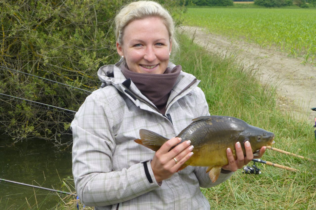 Bettina Schäffer mit ihrem 1540 Gramm schweren Spiegelkarpfen.